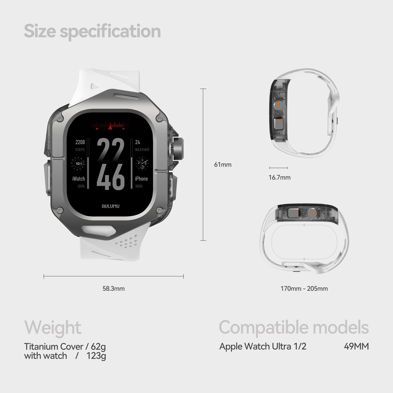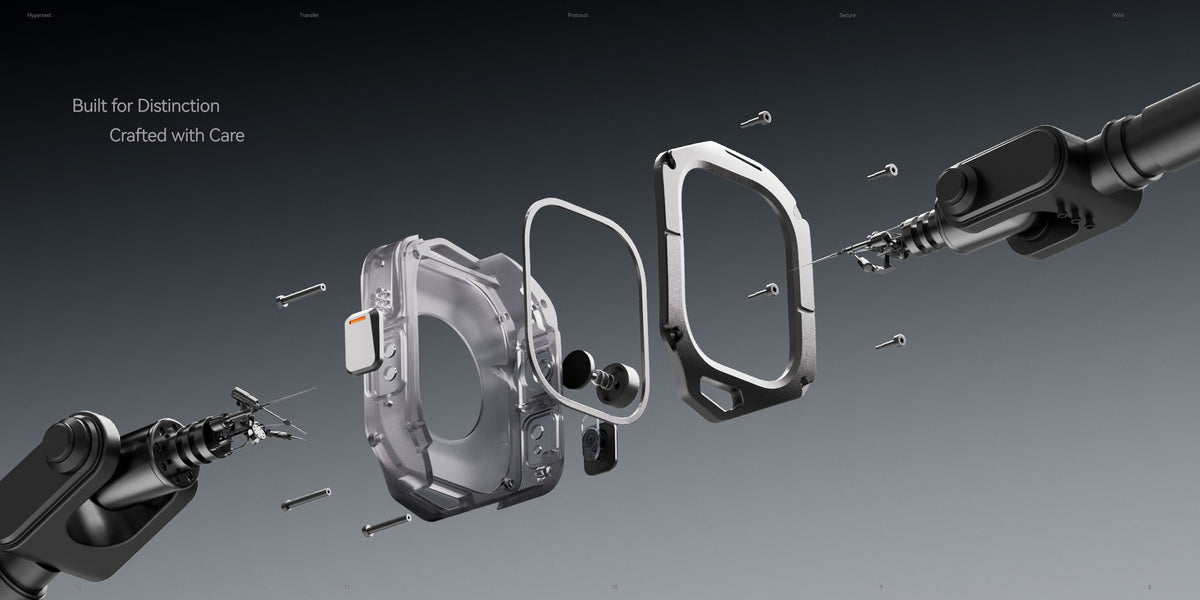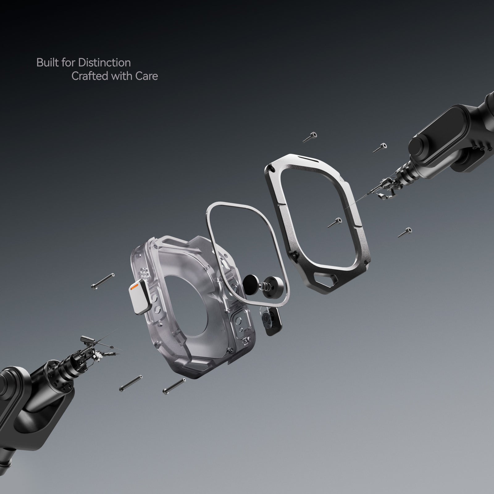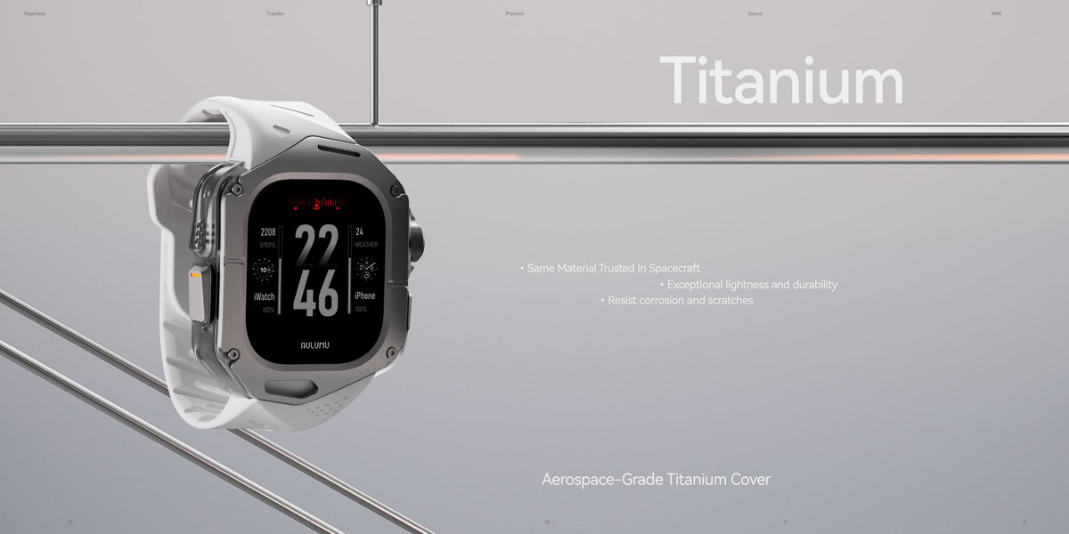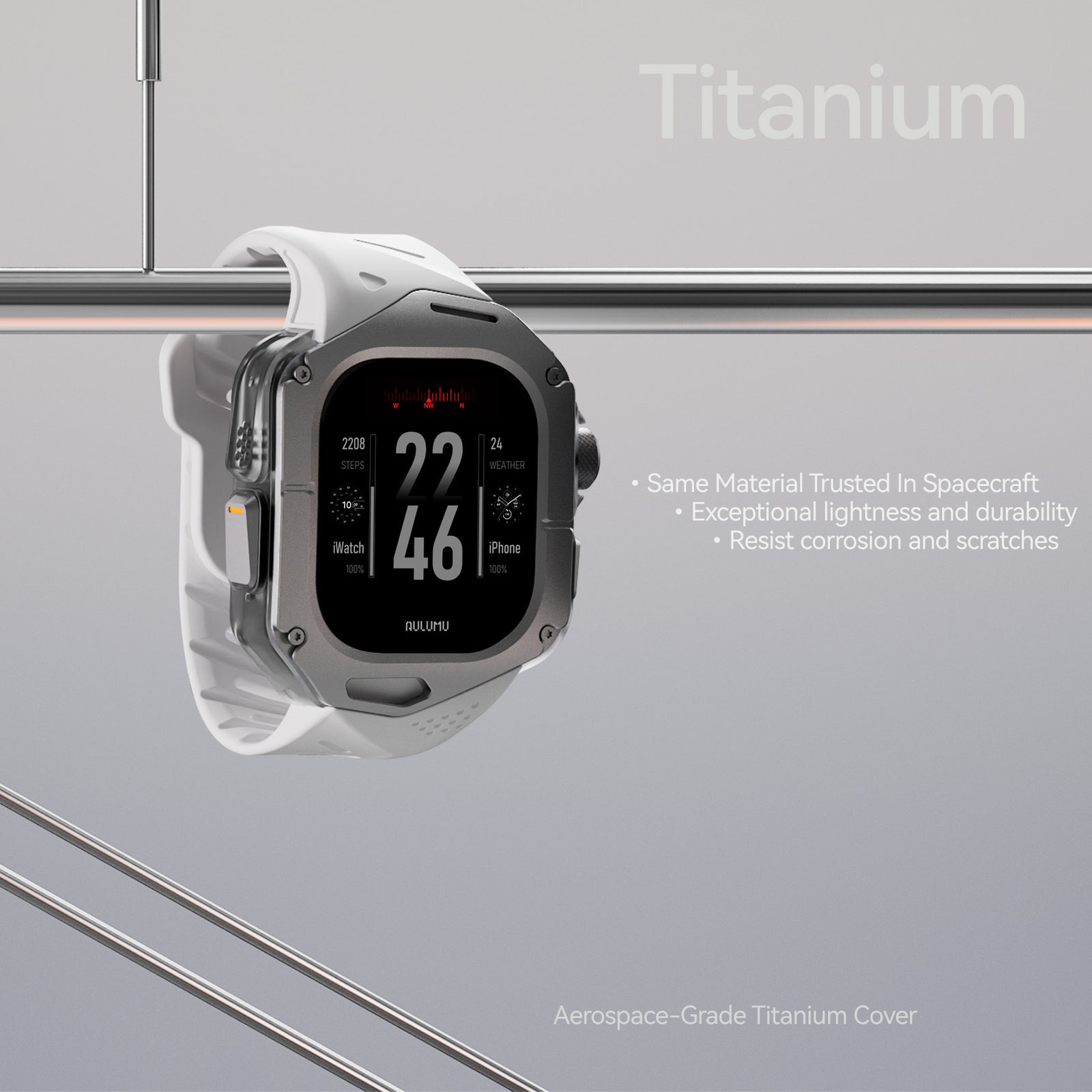 The titanium case, forged from aerospace-grade metal, is tough yet lightweight, with a matte finish that speaks of quiet confidence. Built to handle everyday impact — and whatever else comes your way.