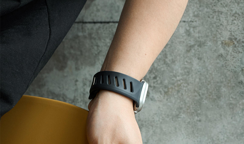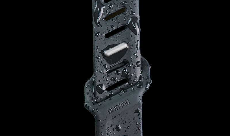 aulumu's second watch band, A02 Offbeat Sport Band, applied new design and material, but still same urban tech style with future aesthetic. This new band made from a high-performance fluoroelastomer, which is durable and strong, yet soft to wear. One-of-a-kind unsymmetrical adjustable holes make it unique to look. Channels design in the bottom of the band offer remarkable breathability and flexibility, ensures all-day comfort. For the closure, it applied an aluminum pin-and-tuck mechanism guarantees secure closure and gives the pin a fresh matte finish.