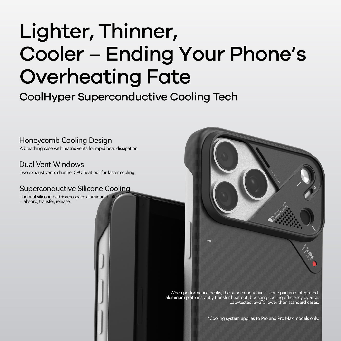 *iPhone Air does not include the cooling system and features a PC camera frame instead of aluminum.