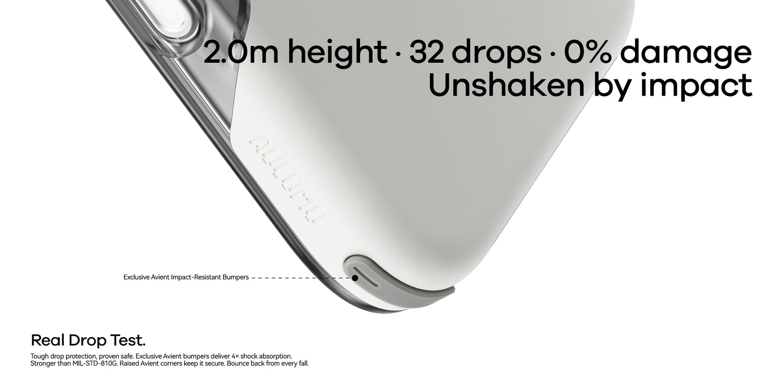 Introducing aulumu’s Shockproof Case — slim, sleek, and ultra-protective. Raised Avient corners deliver 4× shock absorption beyond MIL-STD-810G, so your iPhone bounces back from every fall.