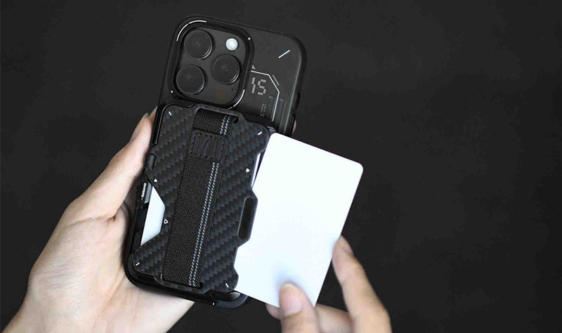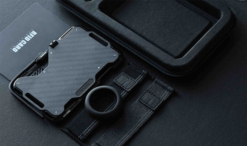 The G03 MagSafe Metal Wallet with carbon fiber cover is a premium EDC accessory designed for those who prioritize lightweight durability, style and function. It has tools easily accessible, a phone kickstand, a bottle opener, and a mini ruler. Constructed from aluminum alloy, this wallet is exceptionally resilient to daily wear and tear. The carbon fiber cover not only adds a sleek and futuristic aesthetic but also enhances the overall structural integrity.