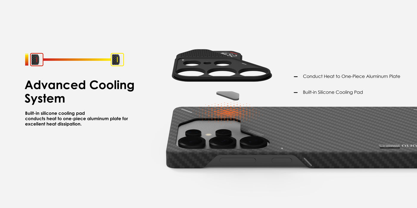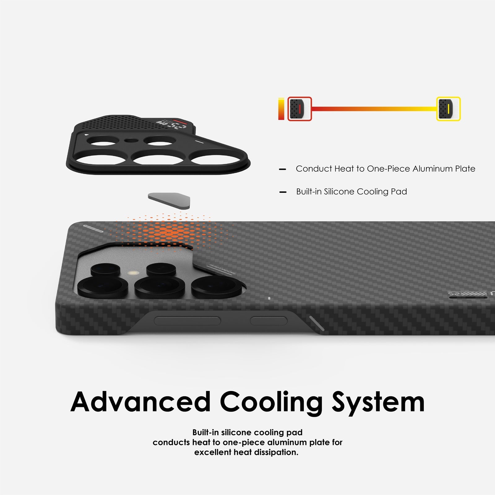 Designed for performance, the case features an advanced internal cooling system with a built-in silicone cooling pad and a one-piece aluminum alloy plate—engineered to efficiently dissipate heat and keep your phone running smoothly, even during heavy use.