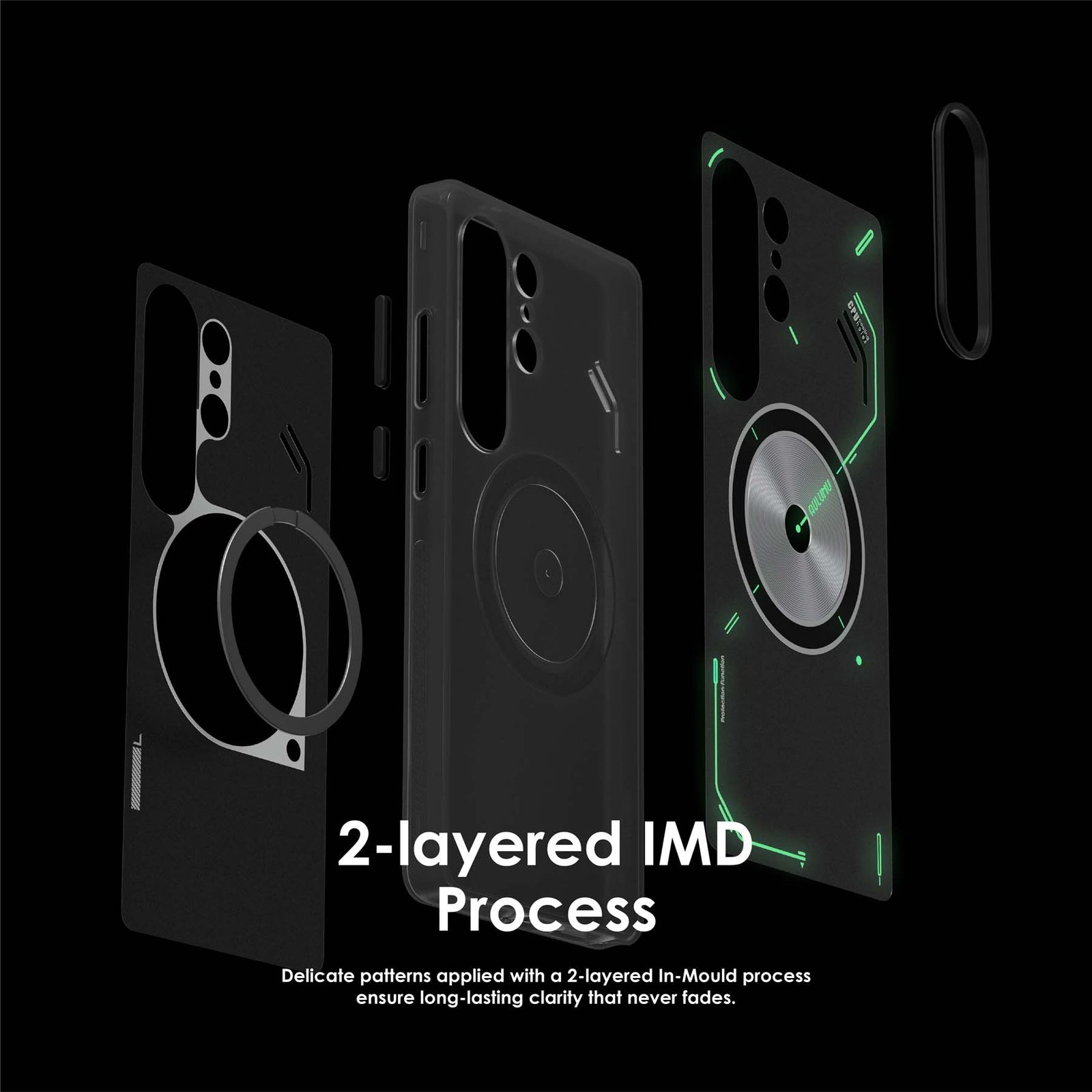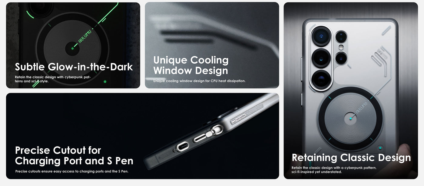 The innovative glow-in-the-dark technology applied to specific areas of the case, creating subtle, sci-fi-inspired lines that illuminate at night without overpowering the overall look. In addition to the popular translucent gray, there is also a fresh translucent white option, offering a modern aesthetic that complements your device.