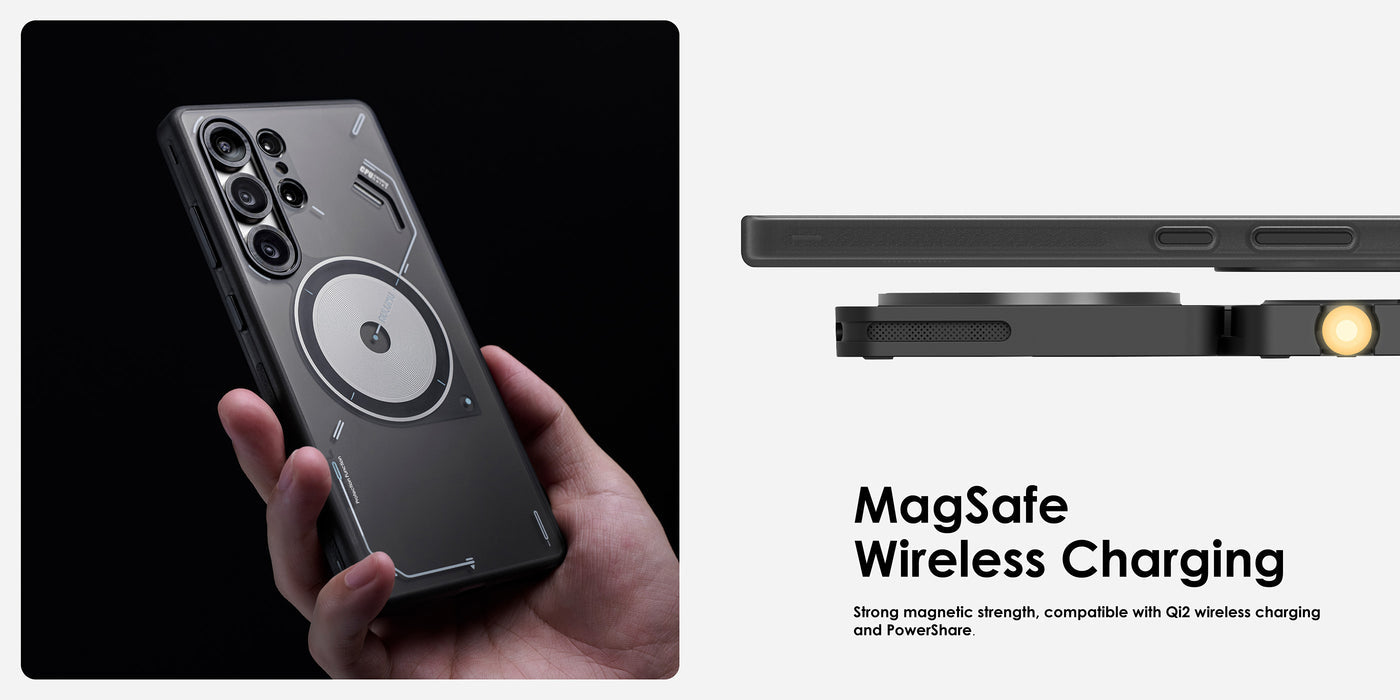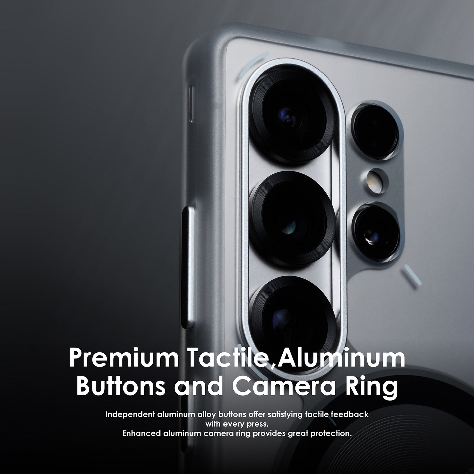 The S25 Frosted Case features an improved frame for a better grip, ensuring your phone stays secure in your hand without feeling slippery. Additionally, it's built in quality magnets, with strong magnetic strength, compatible with Qi2 wireless charging and PowerShare, also the MagSafe accessories, like aulumu G05 kickstand.