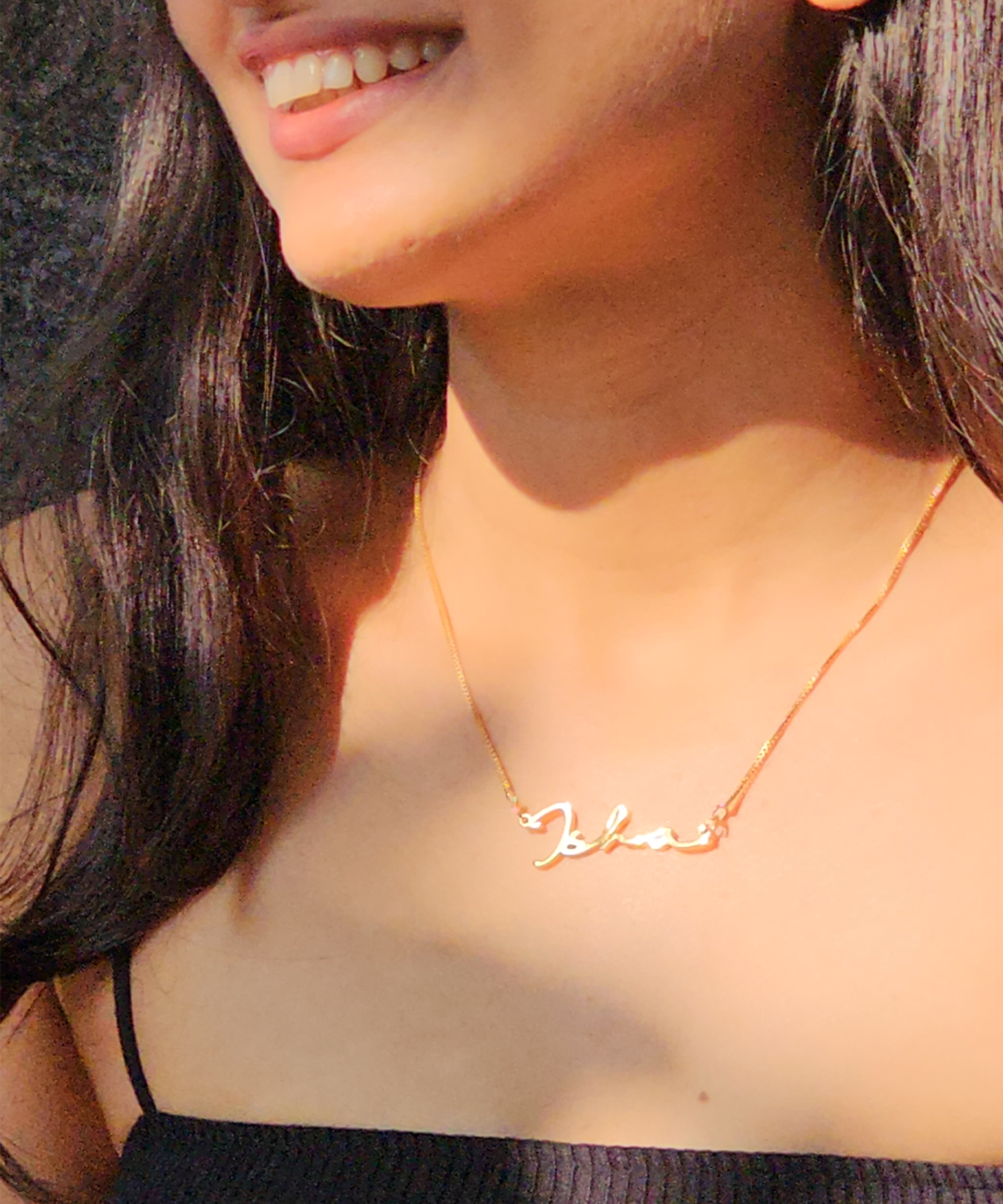Elevate your style with our personalized name necklaces, meticulously crafted and plated with 22 karat gold. Each piece is a timeless expression of individuality and elegance, perfect for adding a touch of luxury to any outfit