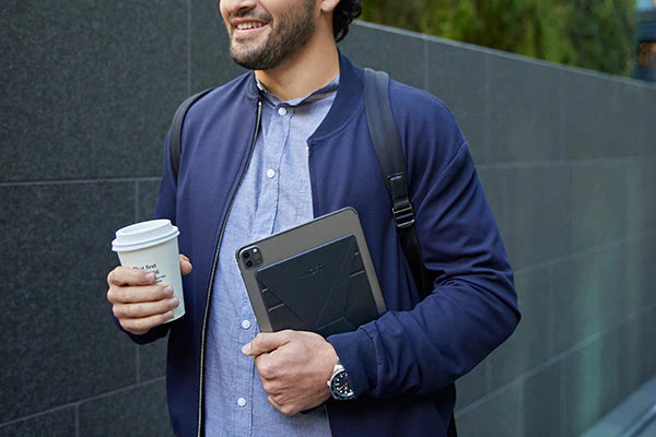 The slimmest and most adjustable tablet holder ever. (Magnetic to switch with other accessories.)