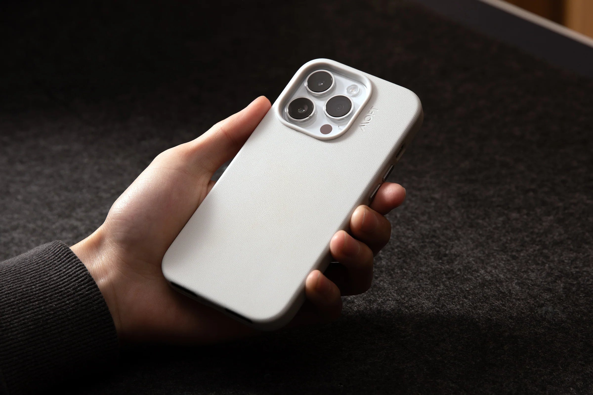 Durability, Sustainability, Softness: made with pioneering MOVAS™-P* Series Vegan Leather, this slim case is crafted for lasting charm.